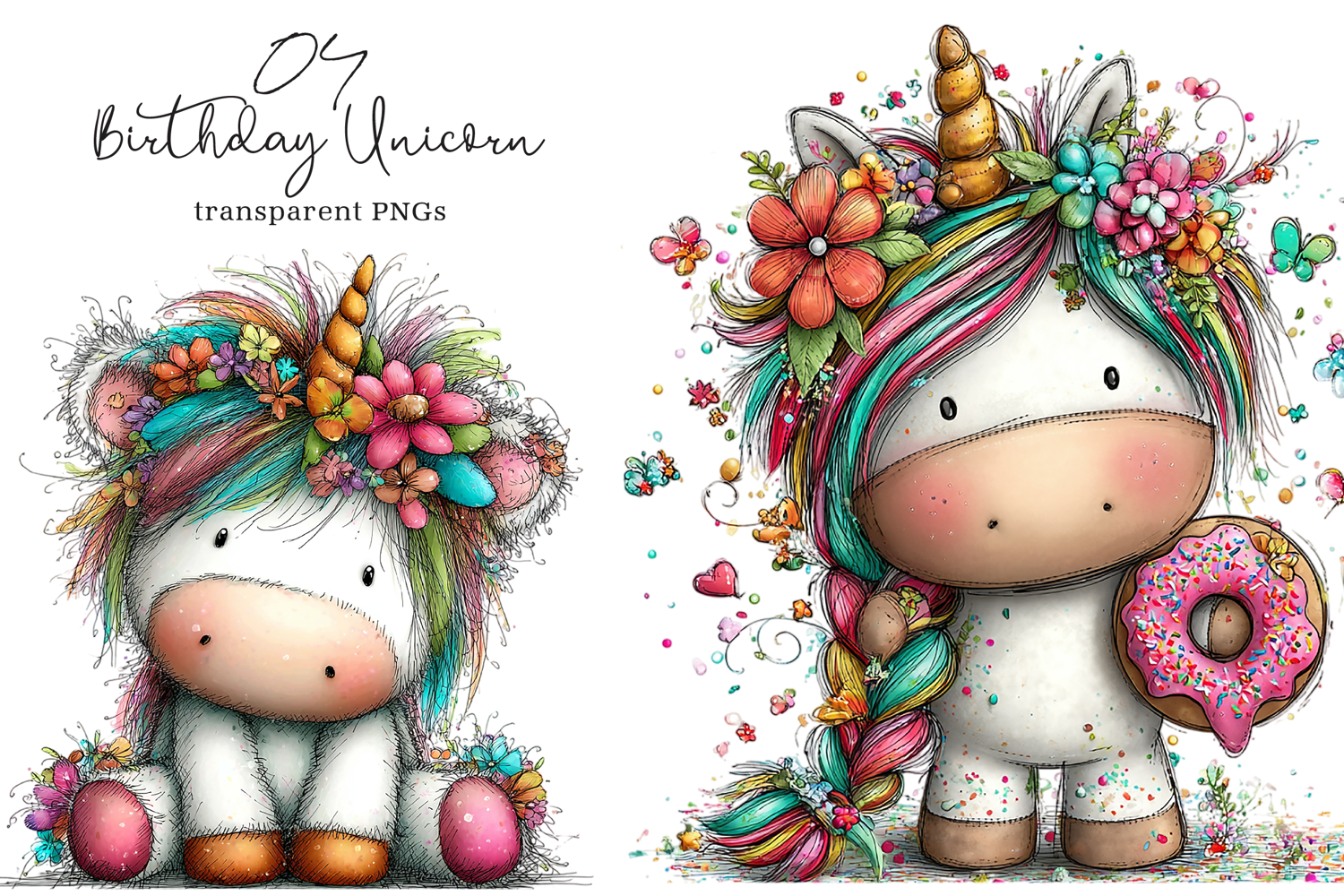 Whimsical Birthday Unicorn PNG Clipart example image 1