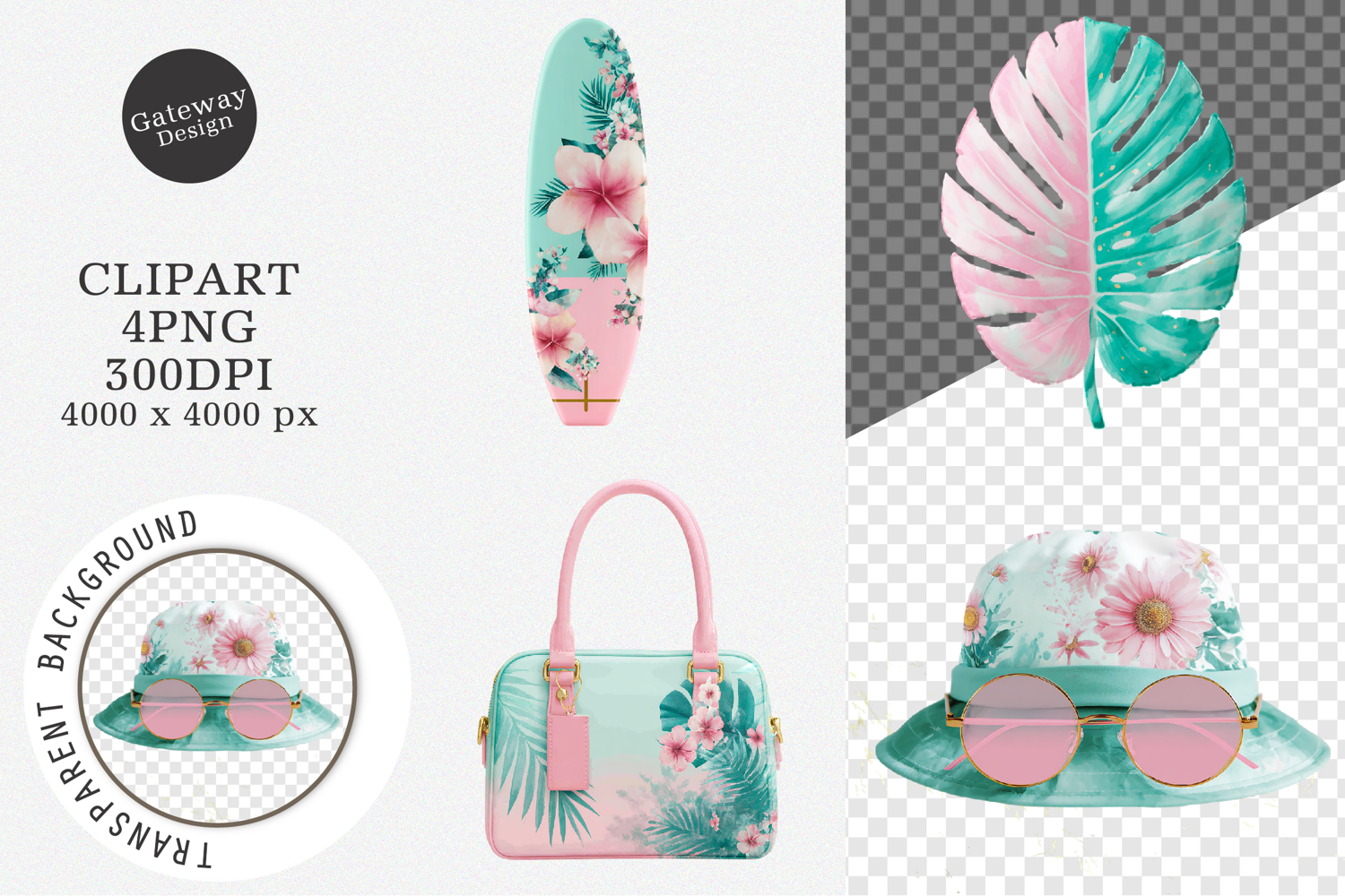 Pink And Mint Summer Clipart example image 1