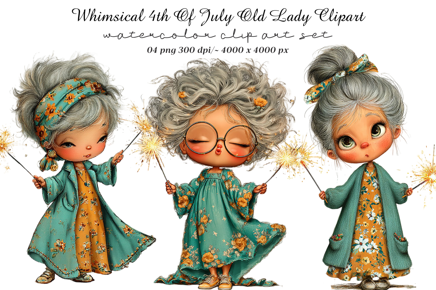 Similar Design Products to Whimsical 4th Of July Old Lady Clipart