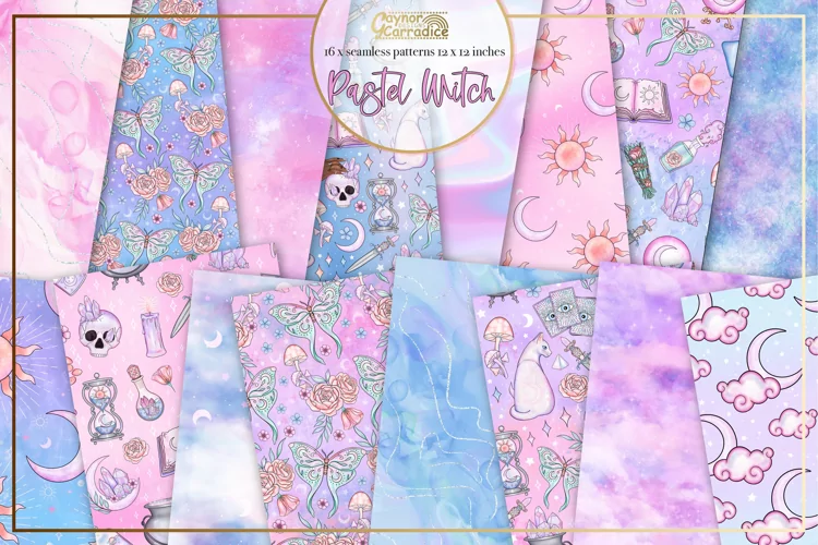 Seamless Patterns Digital Papers Magic Pattern Witch Patterns Celestial Patterns Sublimation Backgrounds Pastel Goth Pastel Halloween Pastel Witch Witchy Backgrounds