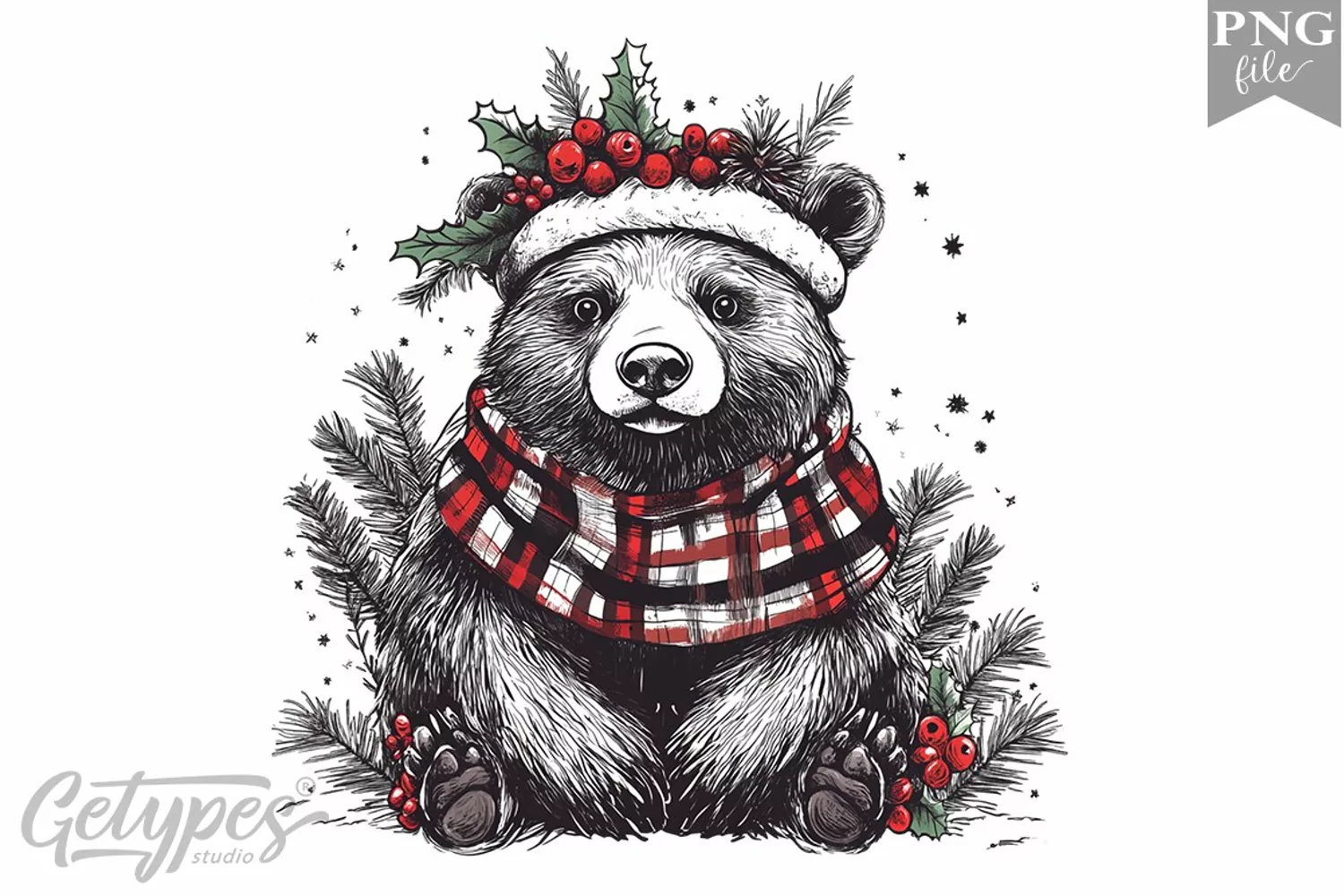 Christmas Bear Clipart Design - High Quality 300 Dpi