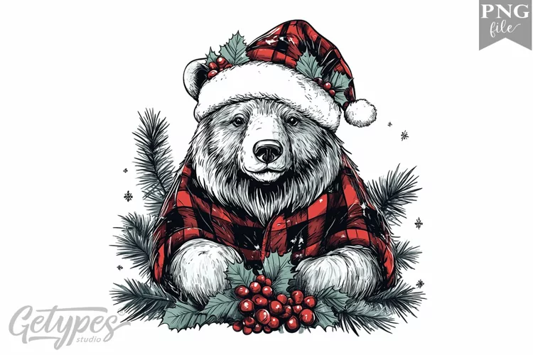 Christmas Bear Clipart Design - High Quality 300 Dpi