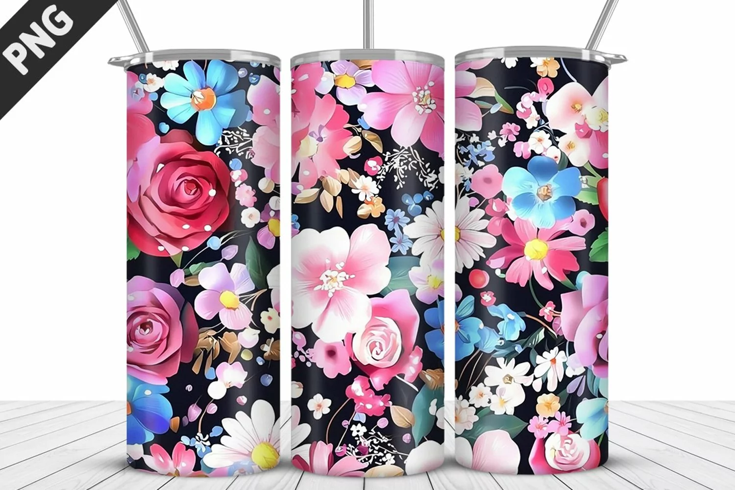 Flowers Digital Art Floral Pattern Craft Supplies Gift Idea Sublimation Design Custom Print Tumbler Png Tumbler Wrap 20oz Tumblers
