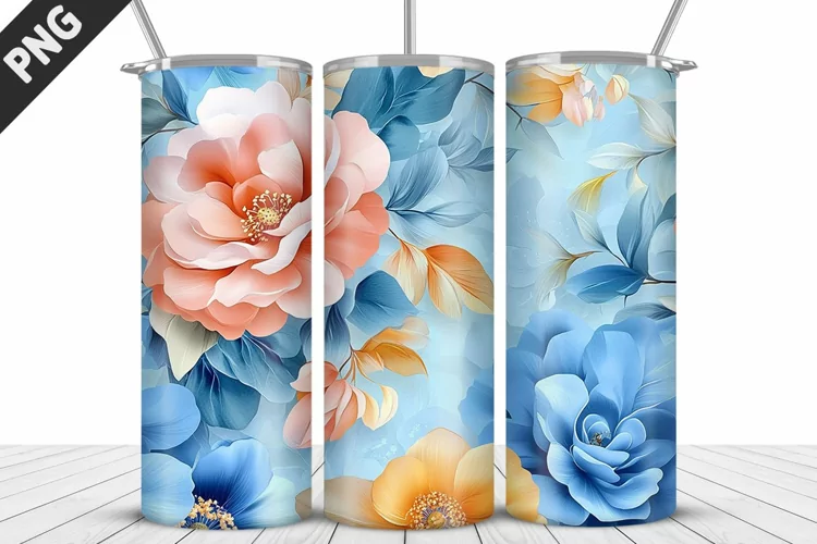 Flowers Digital Art Floral Pattern Craft Supplies Gift Idea Sublimation Design Custom Print Tumbler Png Tumbler Wrap 20oz Tumblers