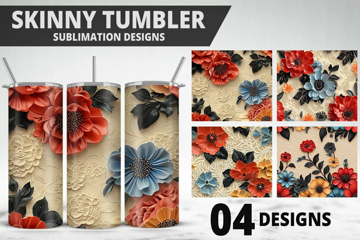 Digital Art Floral Pattern Craft Supplies Gift Idea Sublimation Design 3d Flowers Custom Print Tumbler Png Tumbler Wrap 20oz Tumblers