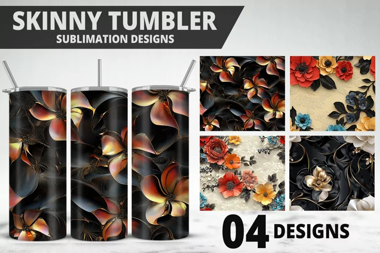Digital Art Floral Pattern Craft Supplies Gift Idea Sublimation Design 3d Flowers Custom Print Tumbler Png Tumbler Wrap 20oz Tumblers