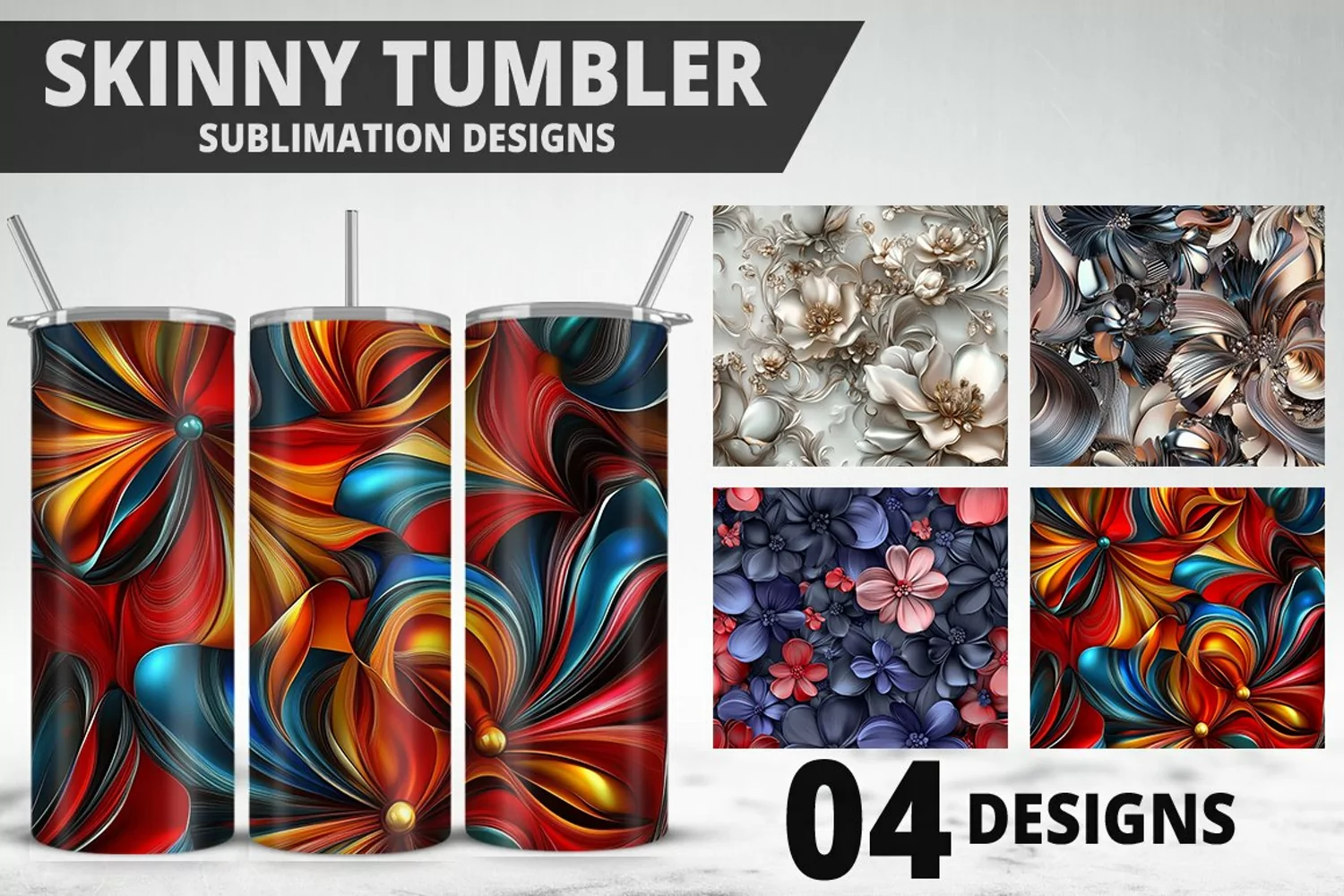 Digital Art Floral Pattern Craft Supplies Gift Idea Sublimation Design 3d Flowers Custom Print Tumbler Png Tumbler Wrap 20oz Tumblers