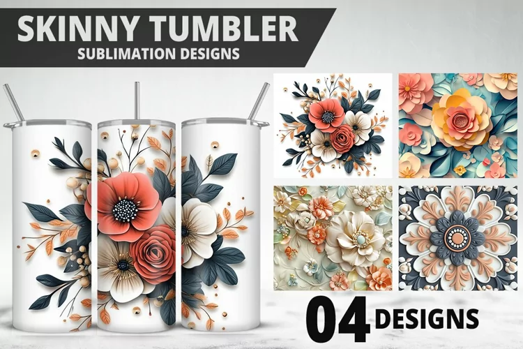 Digital Art Floral Pattern Craft Supplies Gift Idea Sublimation Design 3d Flowers Custom Print Tumbler Png Tumbler Wrap 20oz Tumblers
