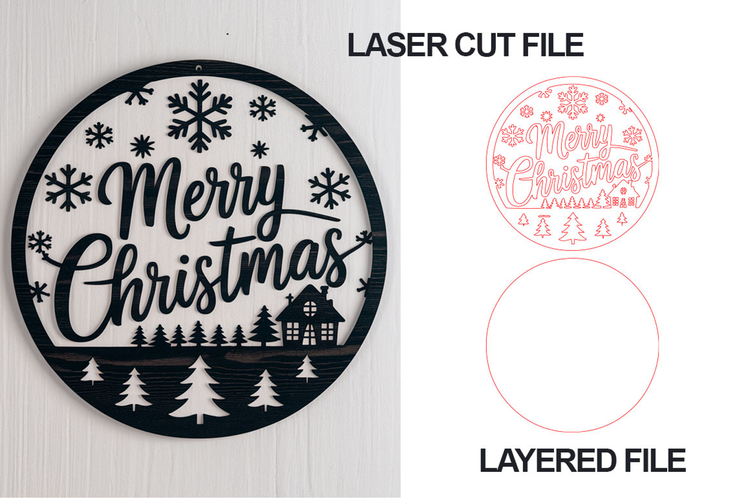 Merry Christmas Round Sign SVG Laser Cut File example image 1