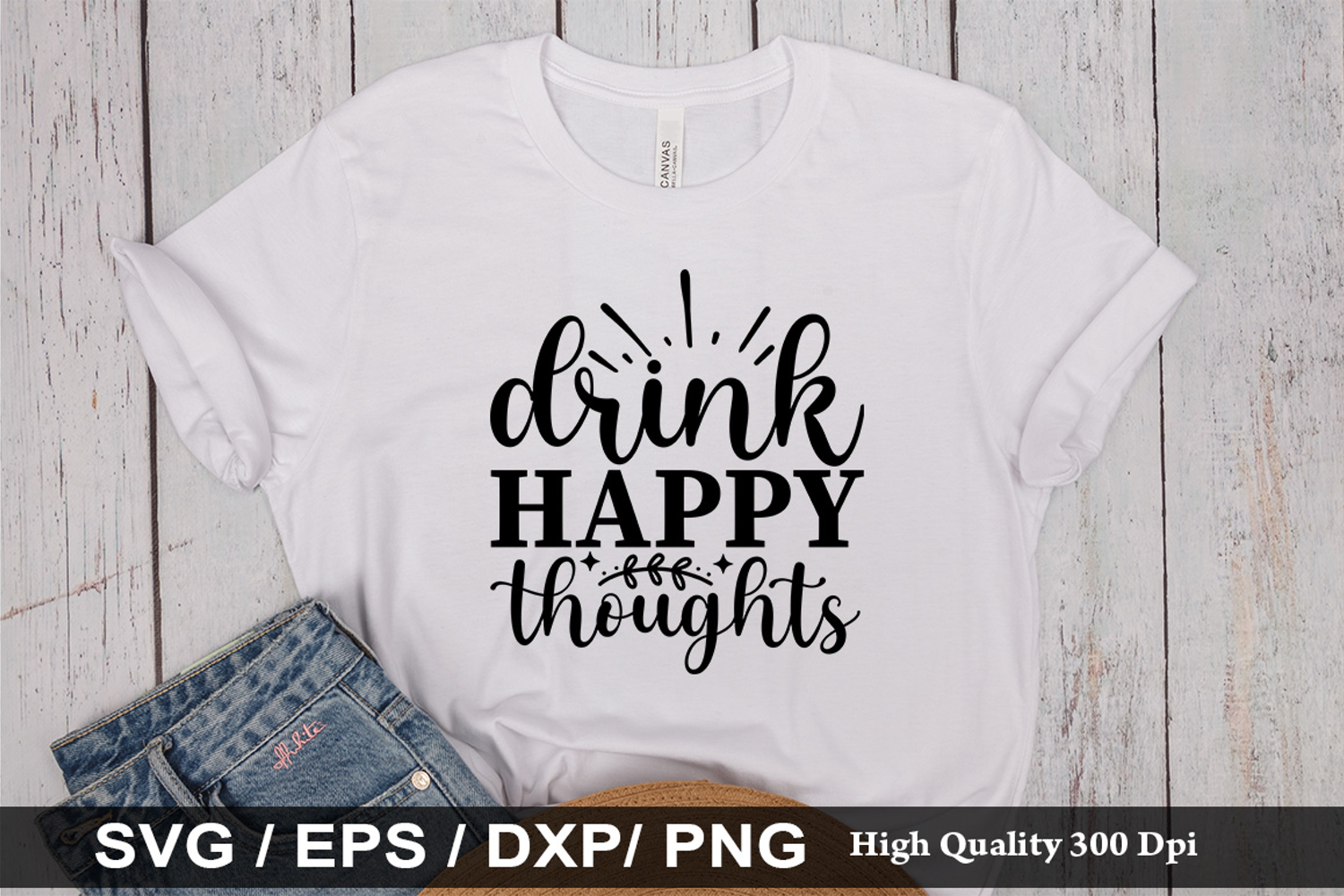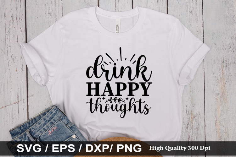 Drink happy thoughts SVG - Christmas Wine Design