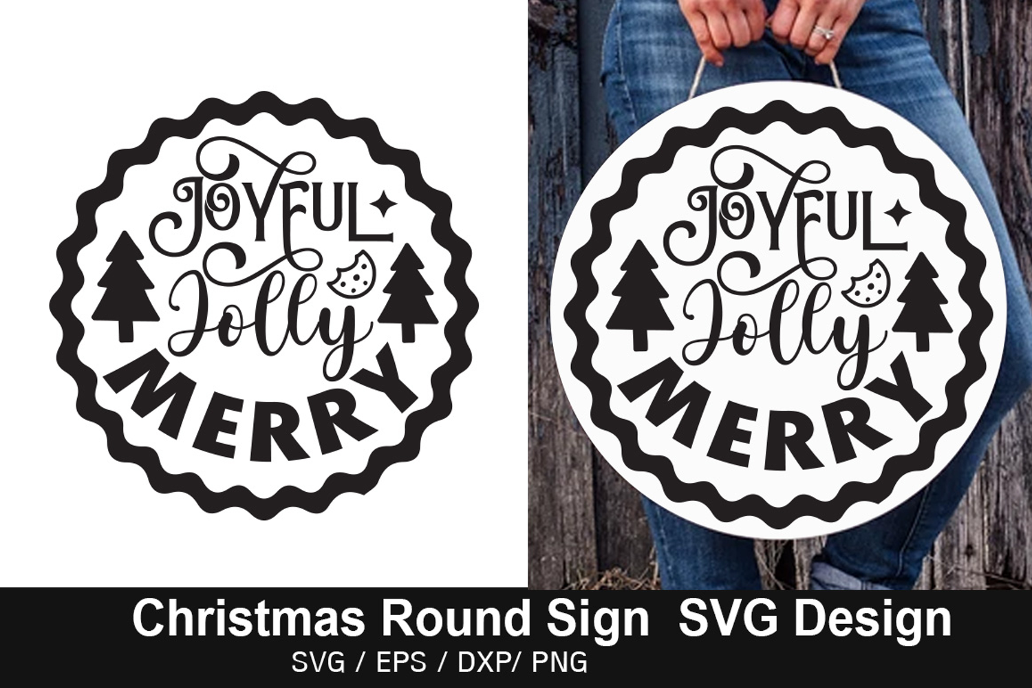 Joyful Jolly Merry SVG - Christmas Round Sign Design example image 1