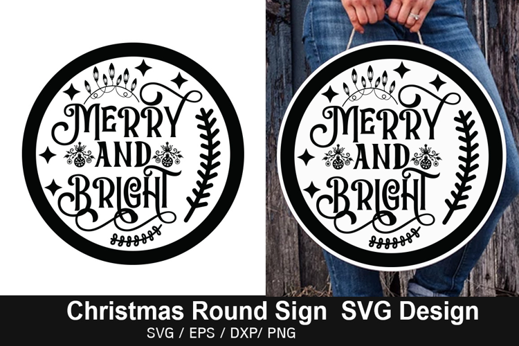 Similar Design Products to Merry and Bright SVG - Christmas Round Sign Design