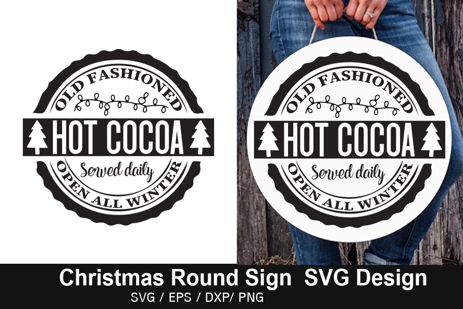 Old fashioned hot cocoa SVG - Christmas Round Sign Design example image 1