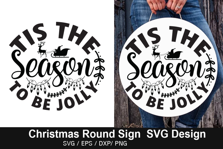 Tis the Season to Be Jolly SVG - Christmas Round Sign Design