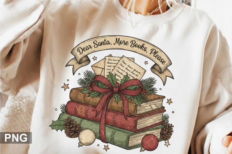Dear Santa, More Books Sublimation - Christmas PNG Design example image 1