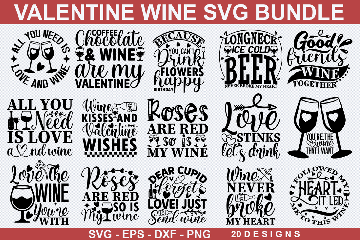 Valentine Wine SVG Bundle -Valentine's Day Design