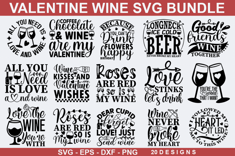 Similar Design Products to Valentine Wine SVG Bundle -Valentine's Day Design
