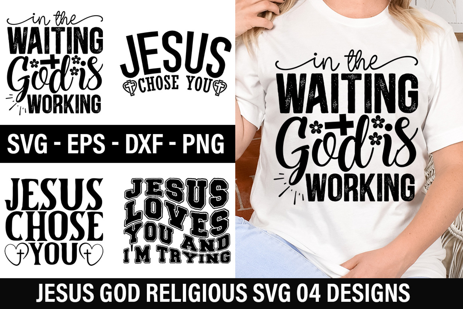 Similar Design Products to Jesus God Religious SVG Design - In the Waiting God is Worki