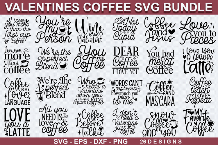 Valentine Coffee SVG Bundle - Coffee and Mascara