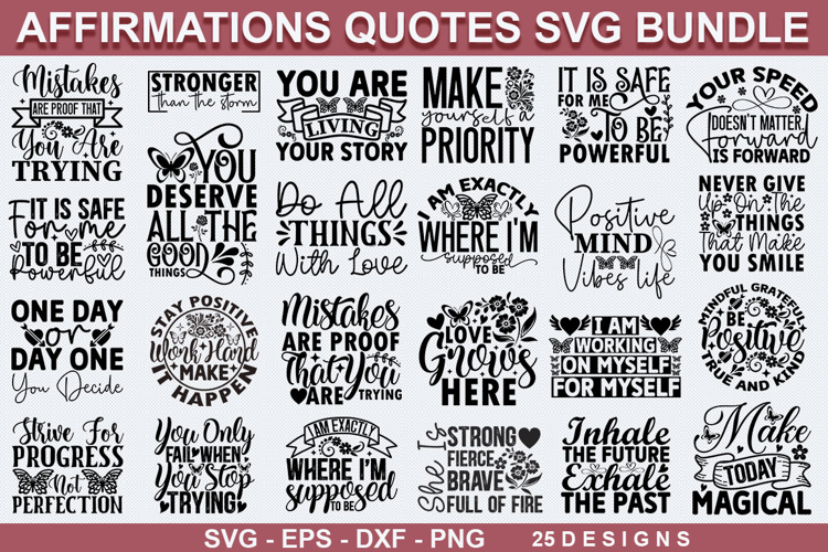 Affirmation Quotes SVG Bundle - Affirmation Design