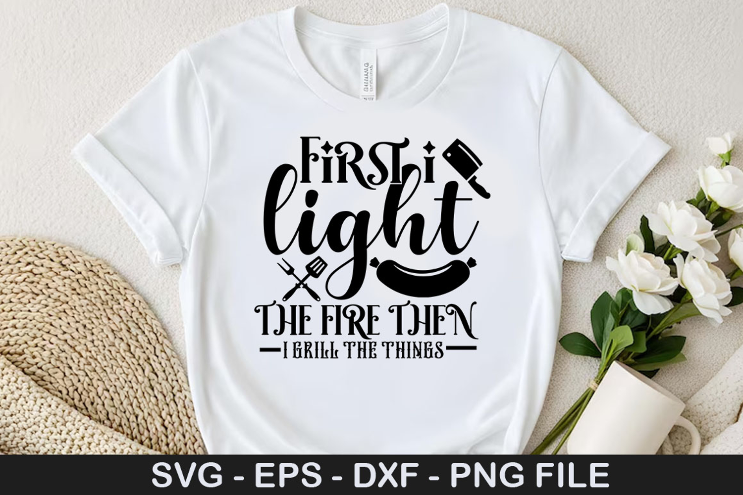First i light the fire then i grill - Barbecue SVG Design example image 1