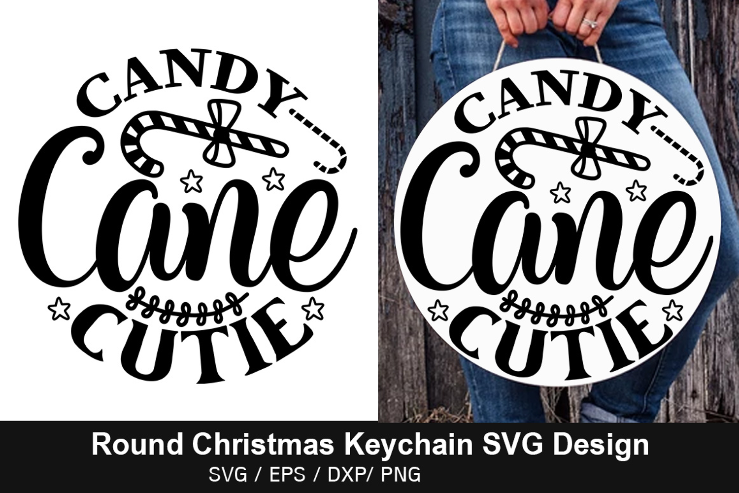 Candy Cane Cutie SVG - Round Christmas Keychain Design example image 1