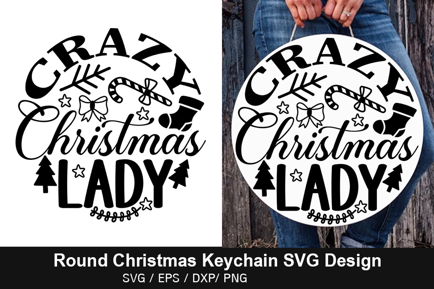Crazy Christmas Lady SVG - Round Christmas Keychain Design
