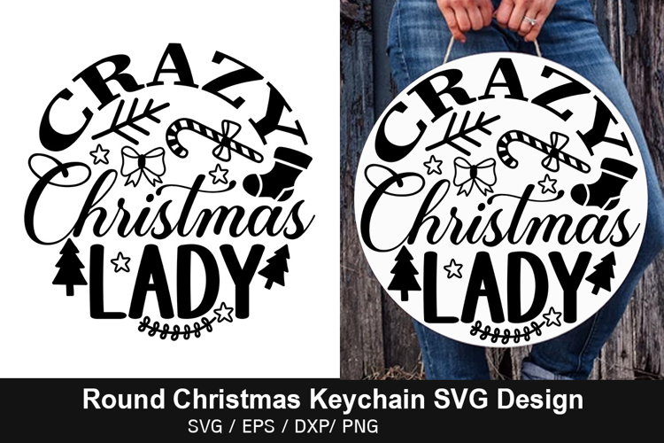 Similar Design Products to Crazy Christmas Lady SVG - Round Christmas Keychain Design