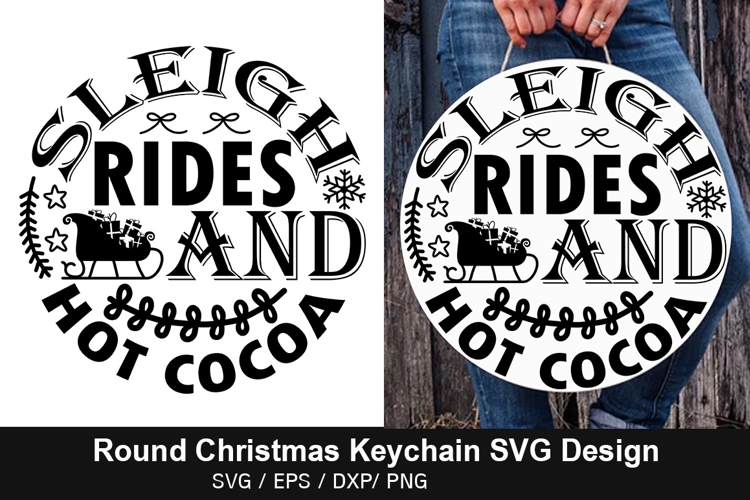 Sleigh rides and hot cocoa SVG - Round Christmas Keychain De example image 1