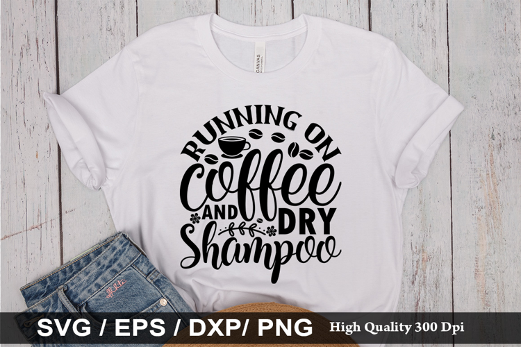 Running on coffee and dry shampoo SVG - Funny Coffee Design