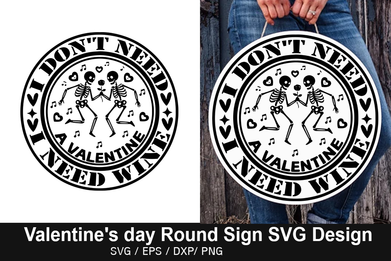 Don't Need a Valentine - Valentine's Day Round Sign Design