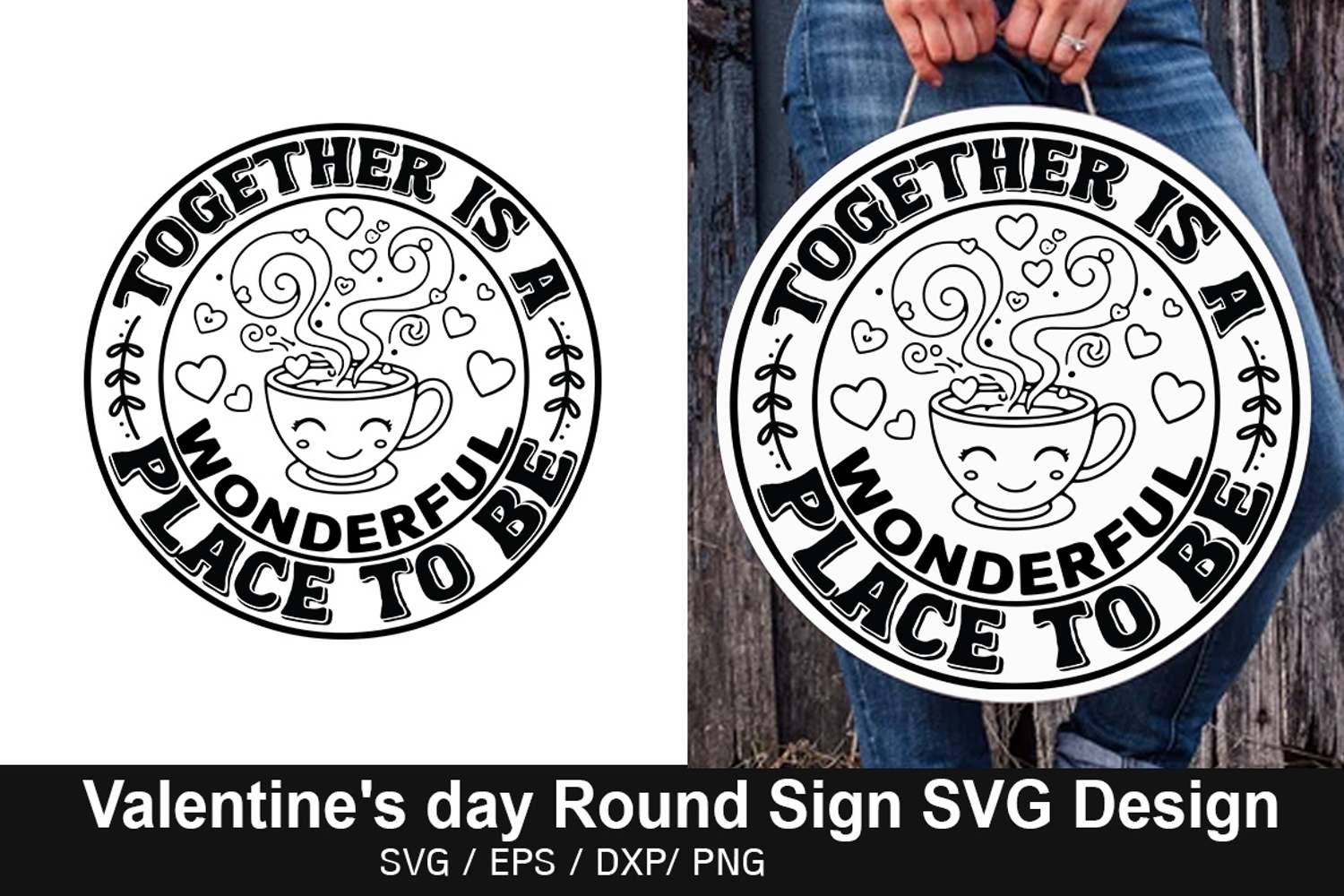 Together is a Wonderful - Valentine's Day Round Sign Design