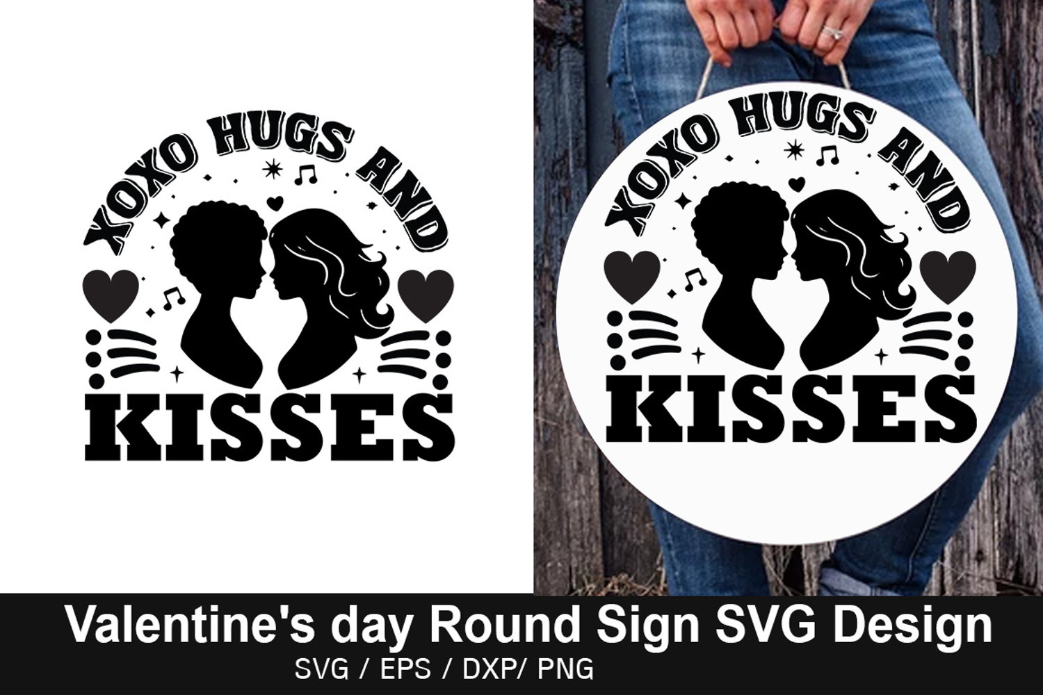 Xoxo Hugs And Kisses - Valentine's Day Round Sign Design example image 1