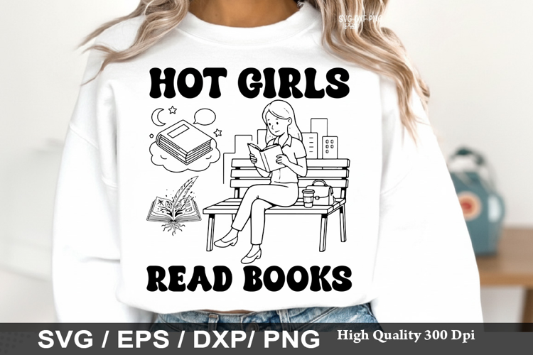 Hot Girls Read Books - Reading Books SVG Design example image 1