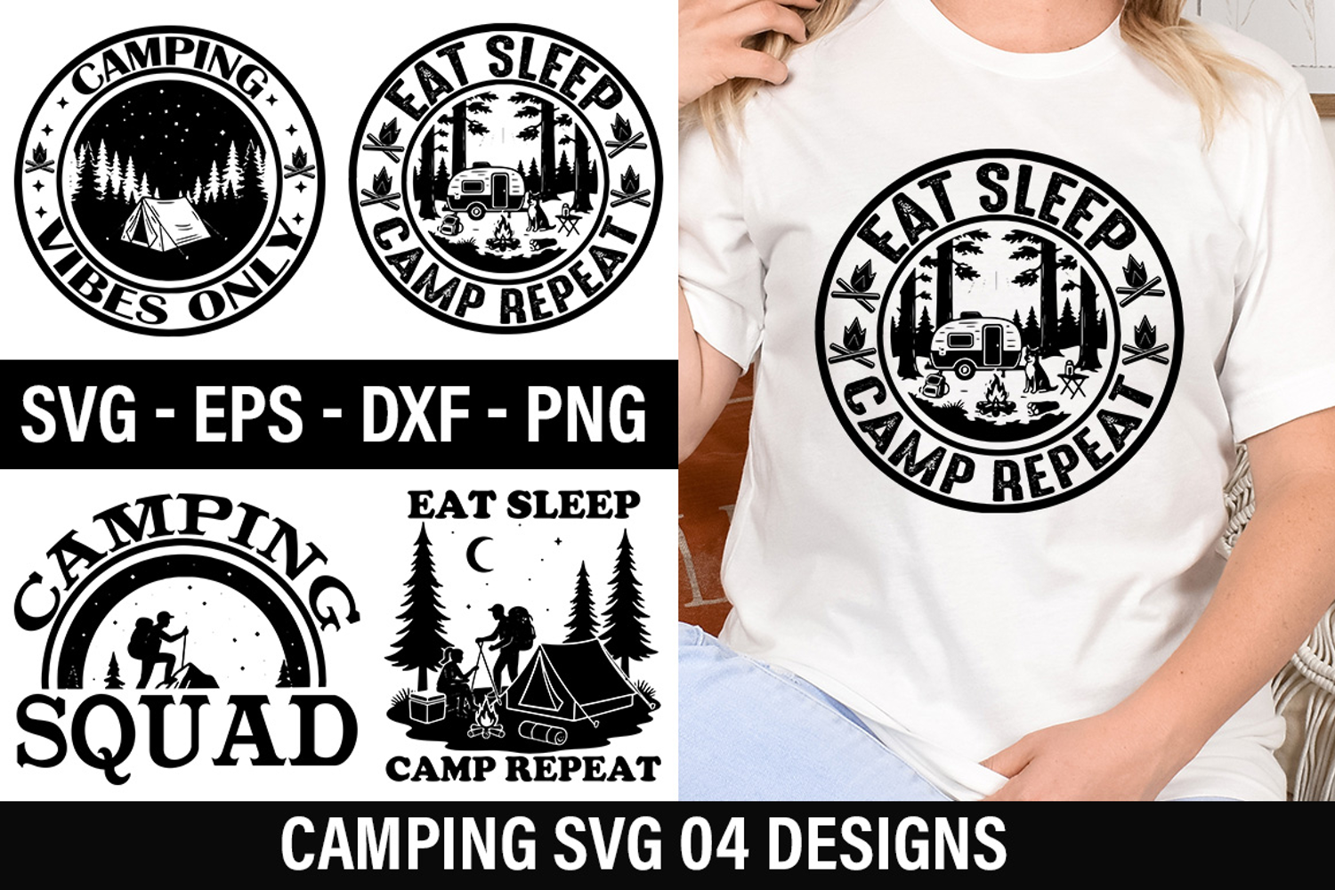 Camping Quotes SVG Design - Eat Sleep Camp Repeat