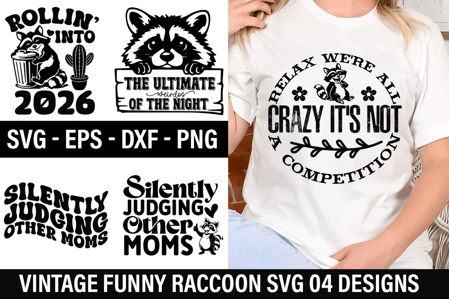 Similar Design Products to Vintage Funny Raccoon SVG Design - Relax We re All Crazy It'