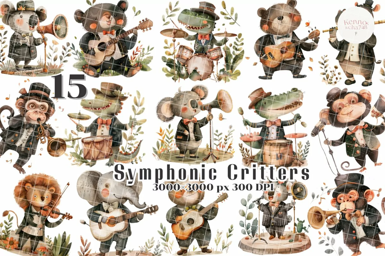 Whimsical Animals Fantasy Art Music Lover Gifts Fantasy Creatures Music Artwork Animal Musicians Critter Illustration Symphony Animals Musical Creatures Creature Artwork