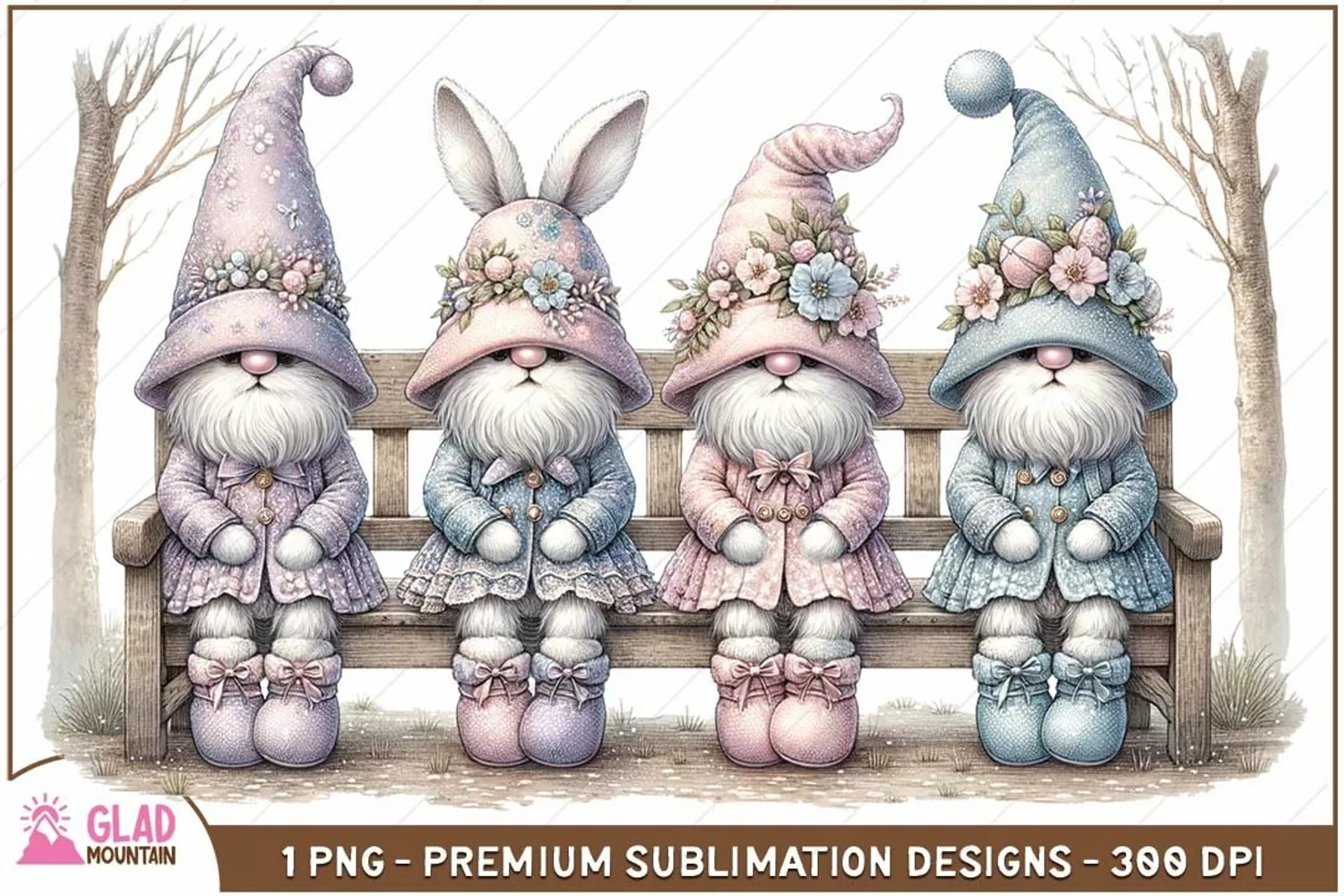 Easter Bunny Gnomes floral png, Easter Gnome bunny pngs
