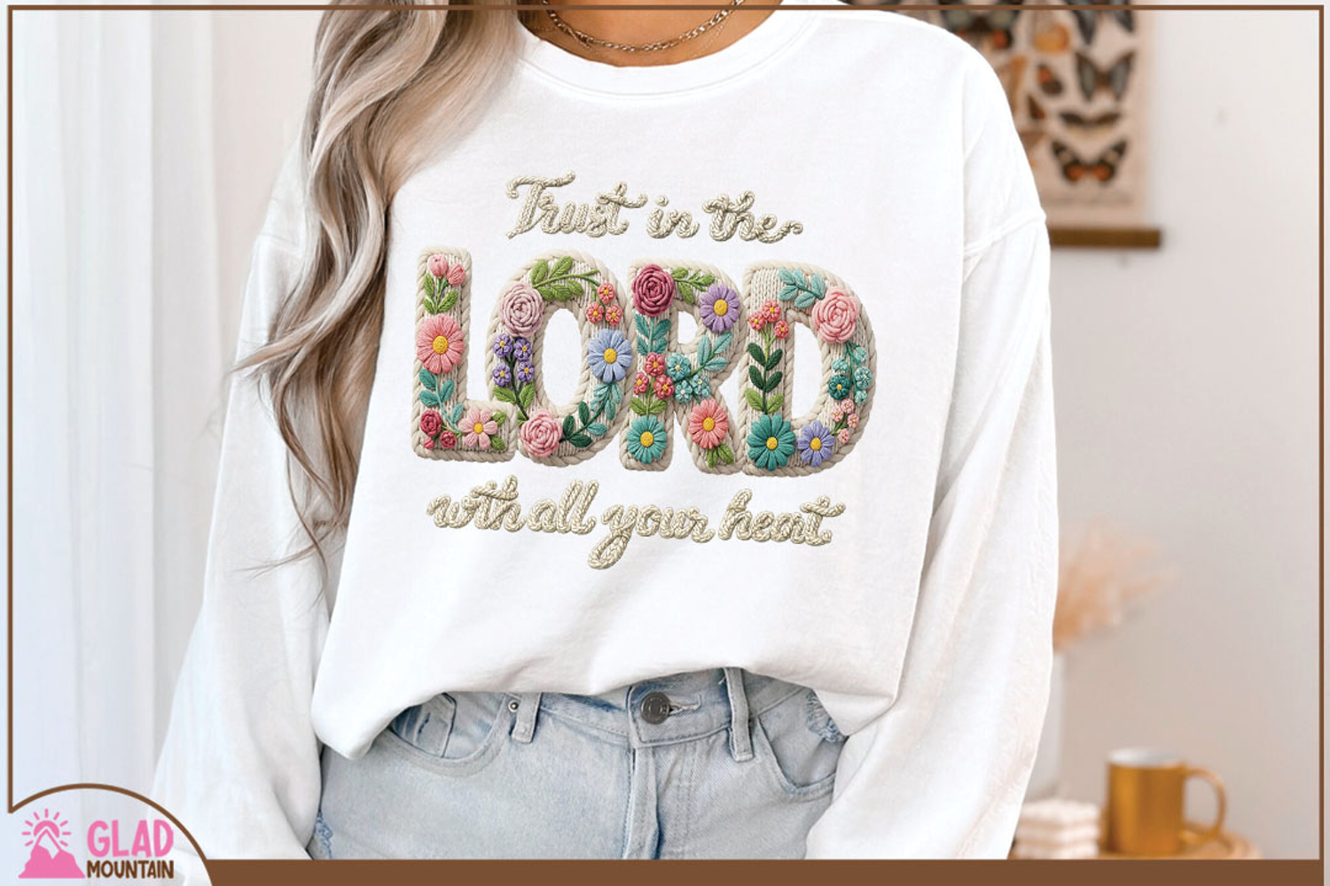This "Trust in the Lord with all your heart" christian design is so fun with its faux yarn crochet letters