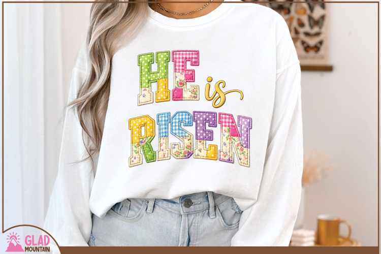 He is Risen, Faux embroidered He is Risen Easter christian example image 1