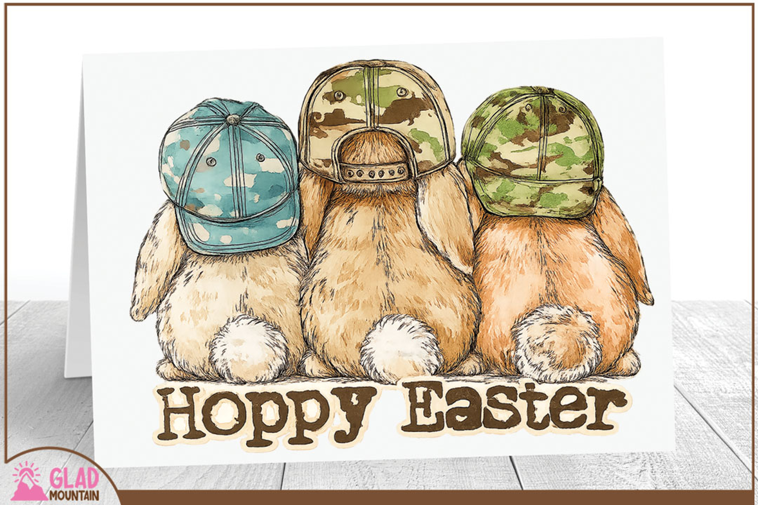 Create such a fun Easter day project with these absolutely Hoppy Easter bunnies wearing camouflage ball caps. You can create items such as t-shirts, mugs, totes, kitchen towels, stickers, greeting cards, baby onesies, nursery wall art etc.