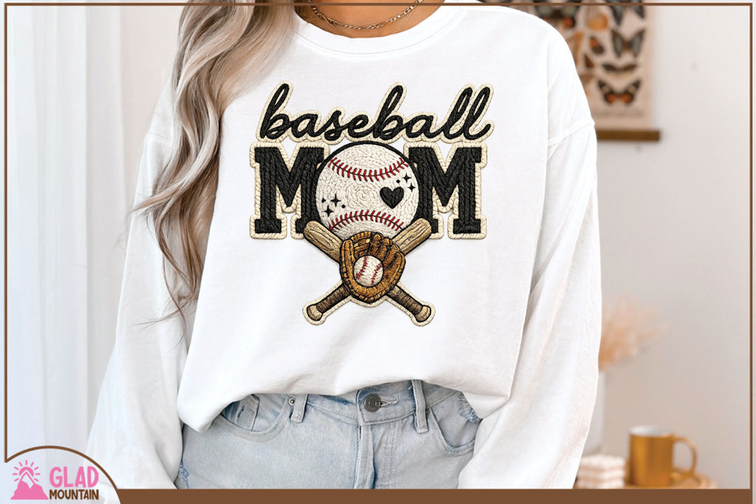 Retro faux knit baseball Mom, faux knit vintage baseball Mom example image 1