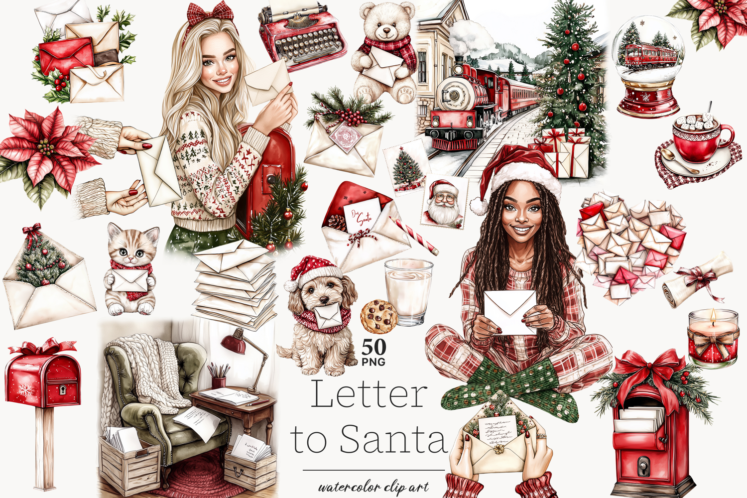 Letter To Santa Clipart - https://designbundles.net/glamartzhanna/6195281-classic-christmas-clipart-bundle-santas-village-cl