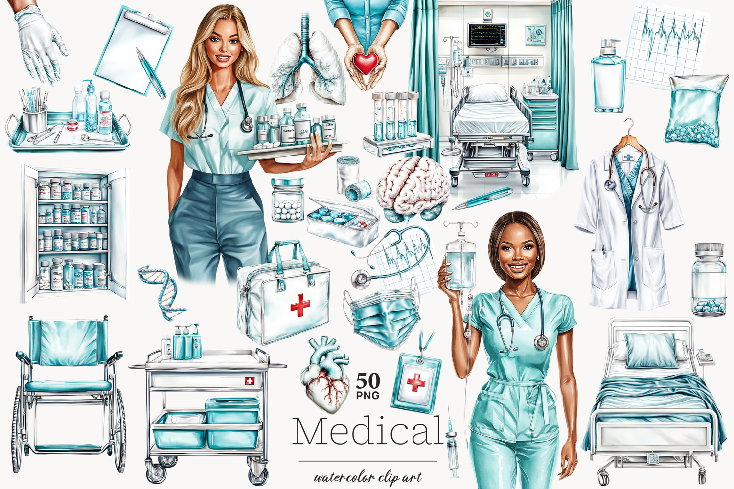 Medical Clipart - https://designbundles.net/glamartzhanna/6327901-medical-clipart-set-nurse-and-doctor-png-illustrat