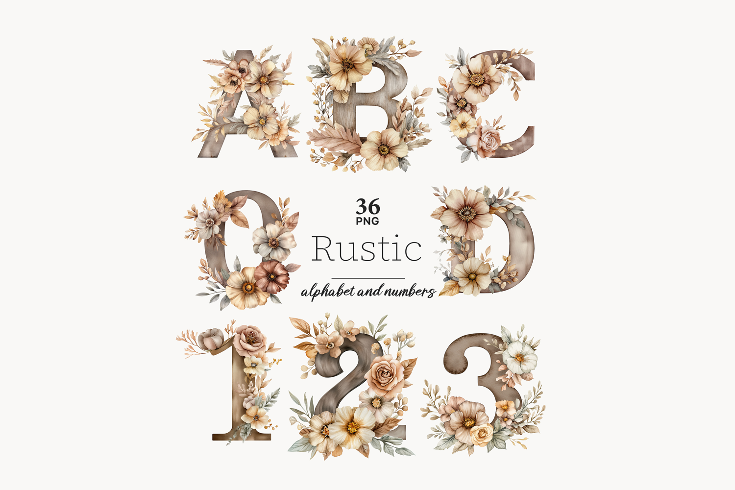 Create warm, natural designs with our charming Rustic Alphabet Digital Set! This earthy collection features 36 high-quality PNG files with brown and neutral-toned letters adorned with rustic florals, perfect for creating cozy, natural-themed projects.