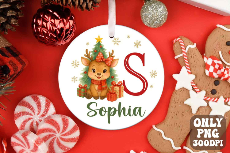 Christmas Alphabet Ornament PNG Girl Reindeer Initial Letter example image 1