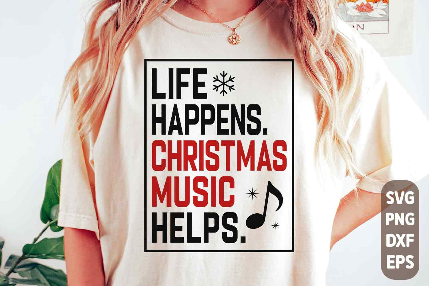 Life Happens Christmas Music Helps SVG: Preppy Christmas PNG example image 1