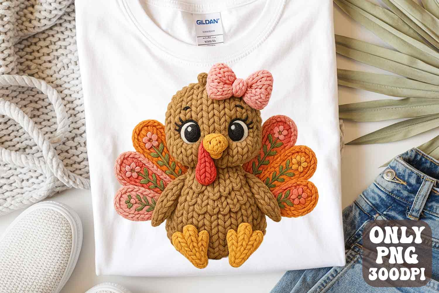 Fall Thanksgiving PNG | Latch Hook Yarn Crochet Turkey Girl example image 1