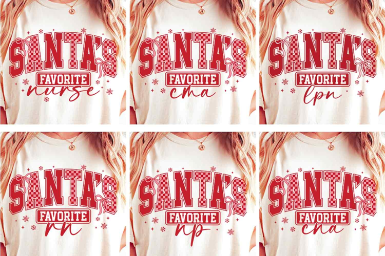 Similar Design Products to Santa's Favorite Nurse Png Bundle, Coquette RN Np CNA CMA