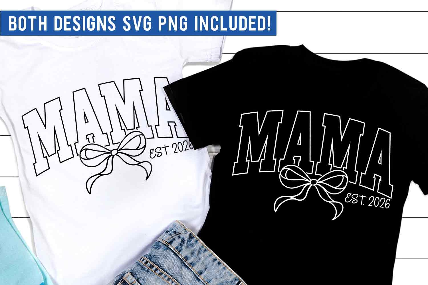 Mama EST 2026 SVG PNG, Retro Varsity Bow Svg, New Mom Design